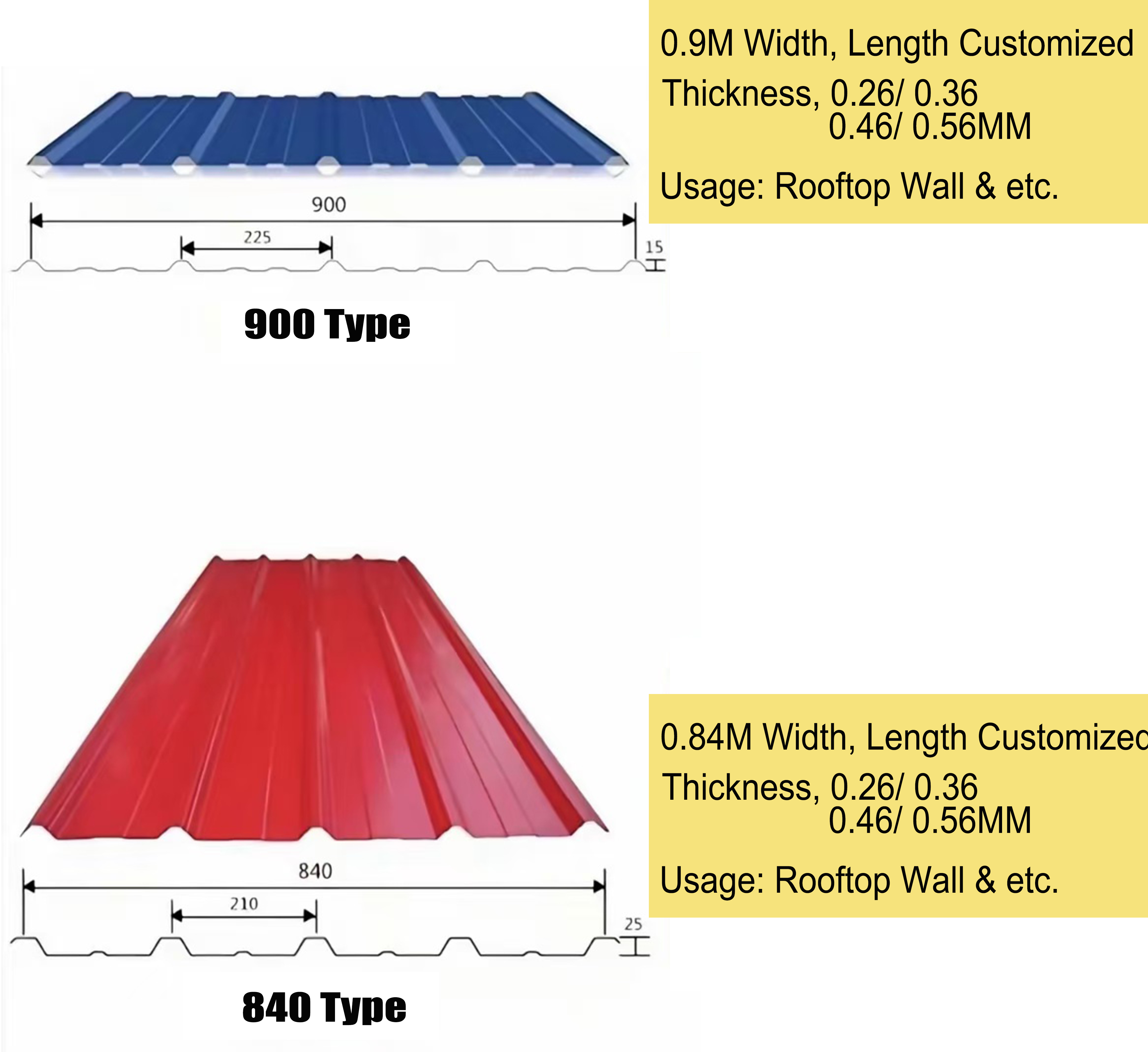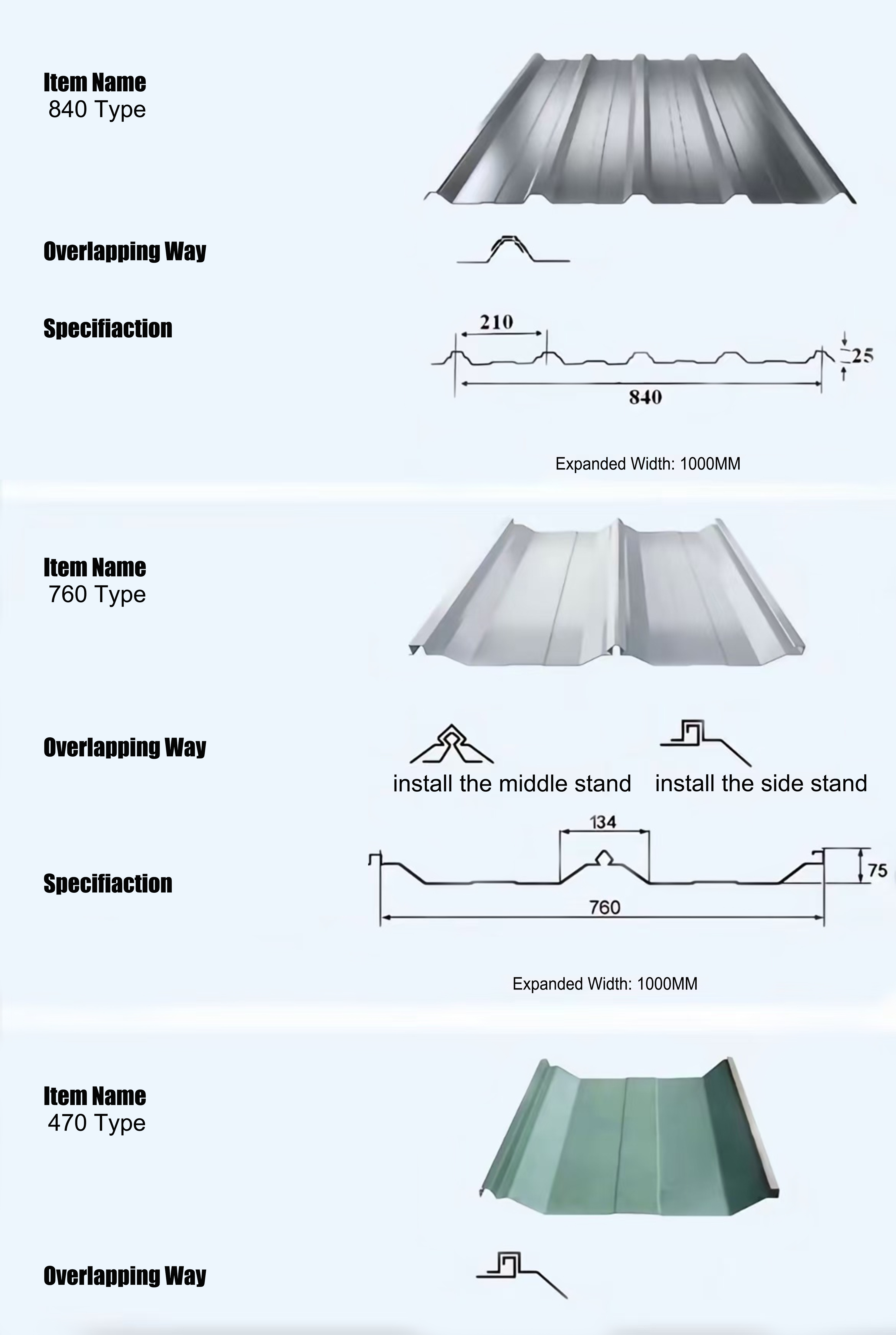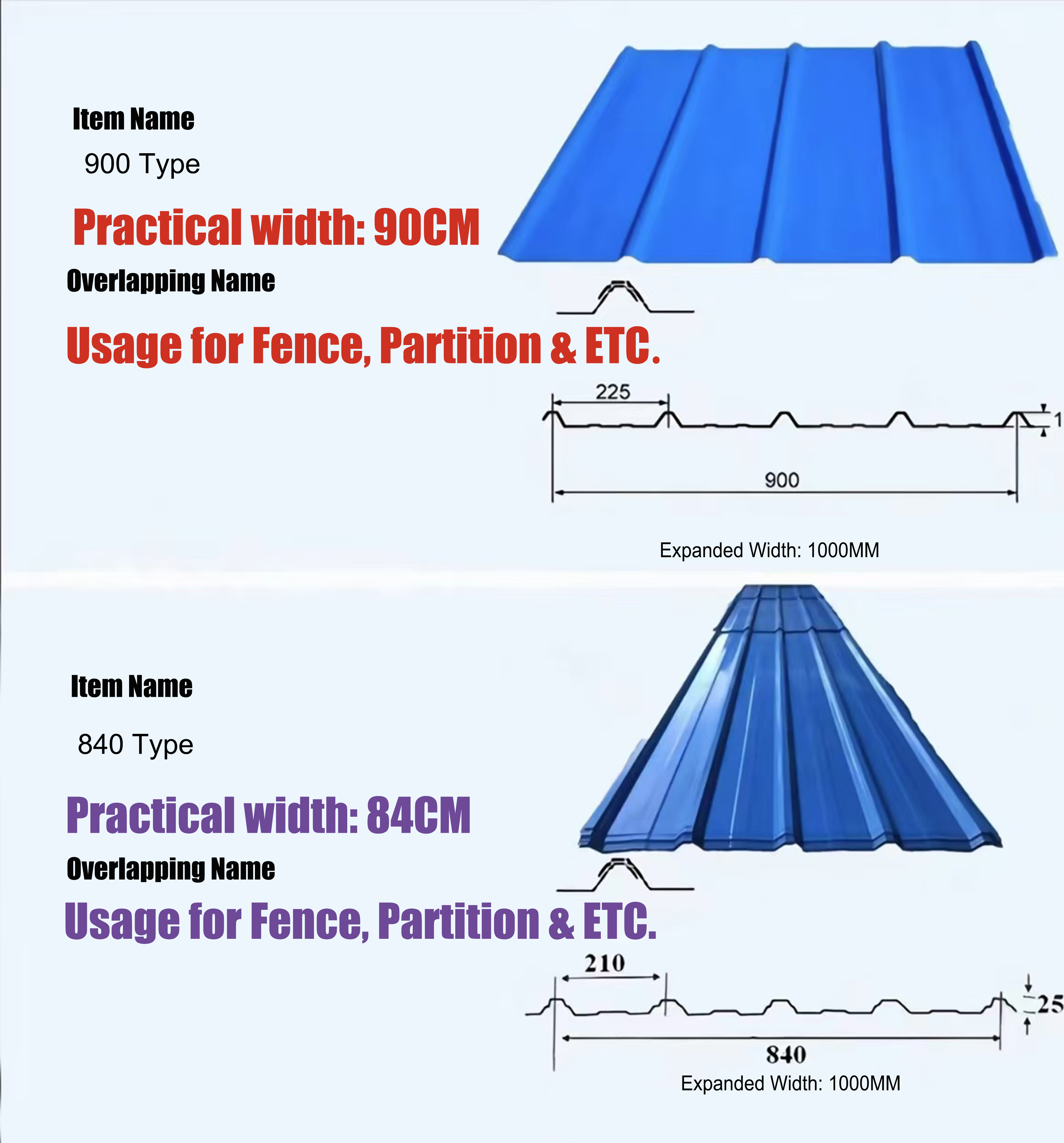 إنها مناسبة للمباني الصناعية والمدنية، والمستودعات، والمباني الخاصة، والأسقف، والجدران، وتزيين الجدران الداخلية والخارجية للمنازل ذات الهيكل الفولاذي الكبير.